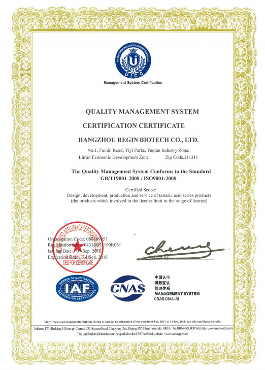 ◆ 2014年制定《工業(yè)用酒石酸鉀鈉》HG/T4791-2014和《工業(yè)用DL-酒石酸》HG/T4792-2014行業(yè)標(biāo)準(zhǔn);