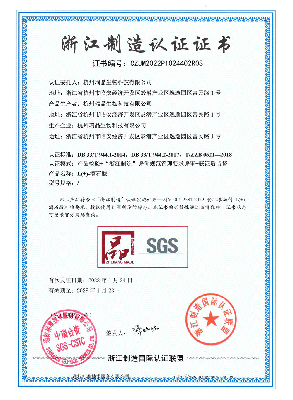 ◆ 2009年參與制訂GB25545-2010《食品添加劑 L(+)-酒石酸》食品安全國家標(biāo)準(zhǔn);