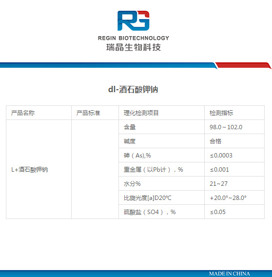 2、主要用于制造酒石酸鹽類,如酒石酸銻鉀、酒石酸鉀鈉等